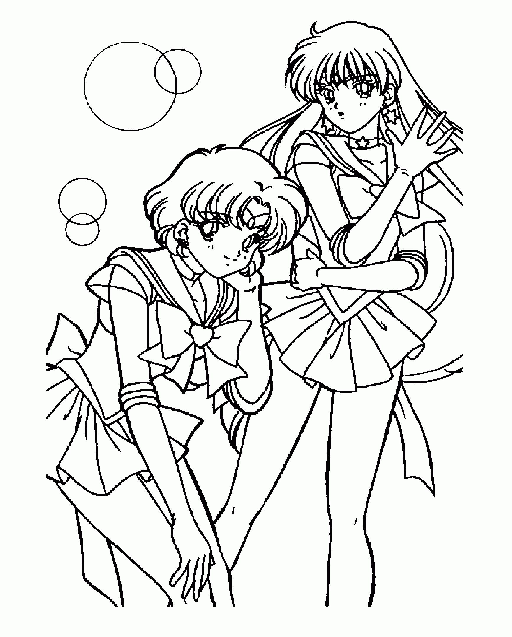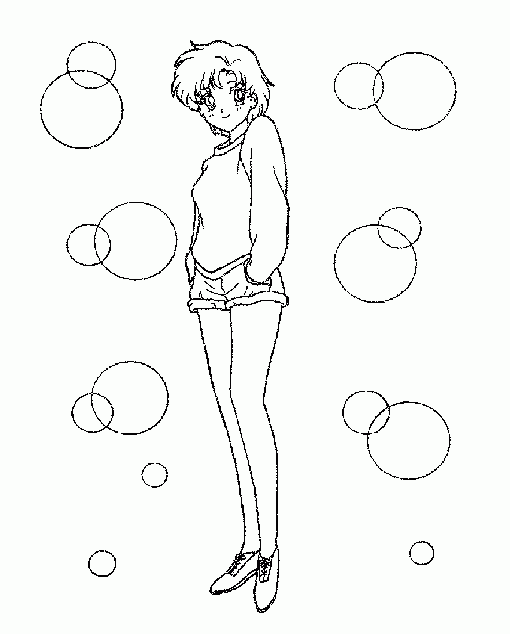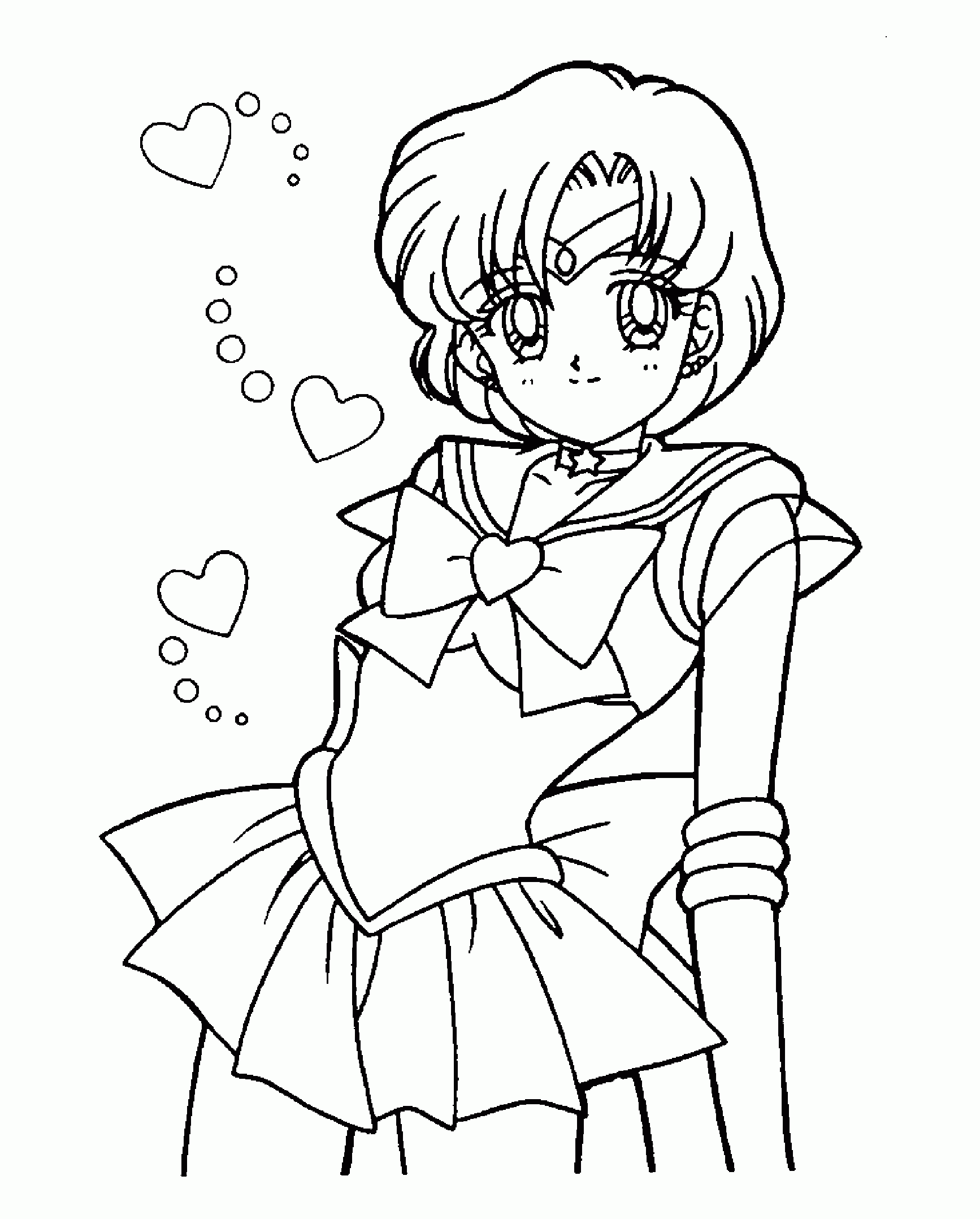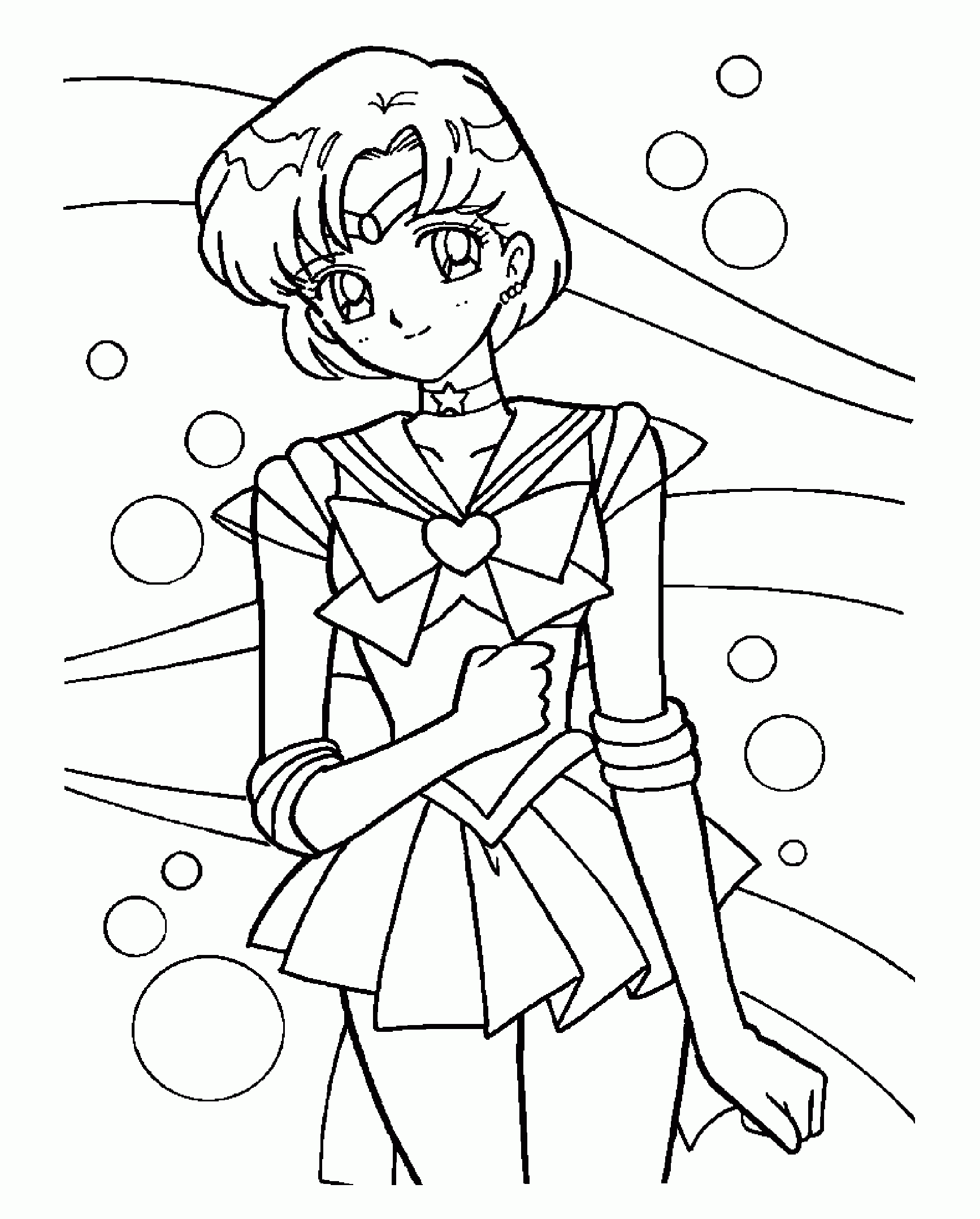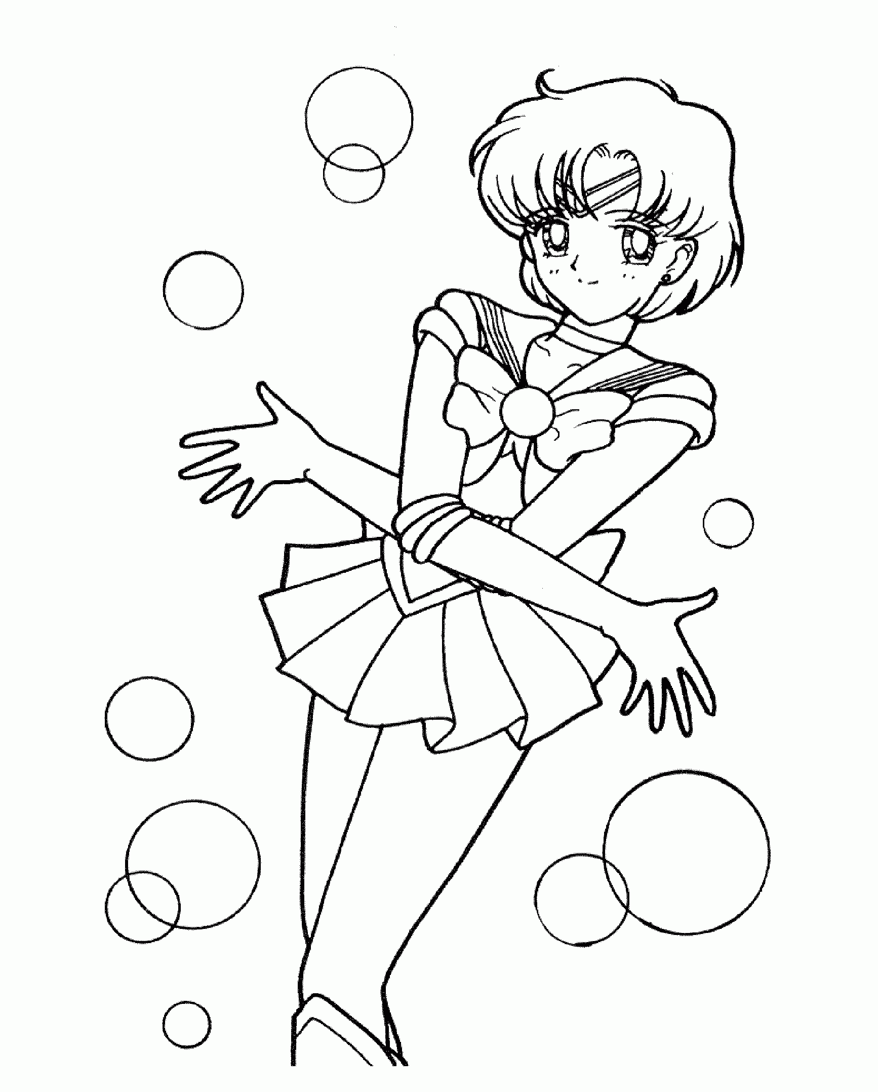 For those of you who have no drawing talent (like me!) or for those of you who like to color, here are some coloring pages! Each page has Sailor Mercury in it! Click on the thumbnail to open the picture in a new window. The full size pages are large, so they may take a little bit to load.