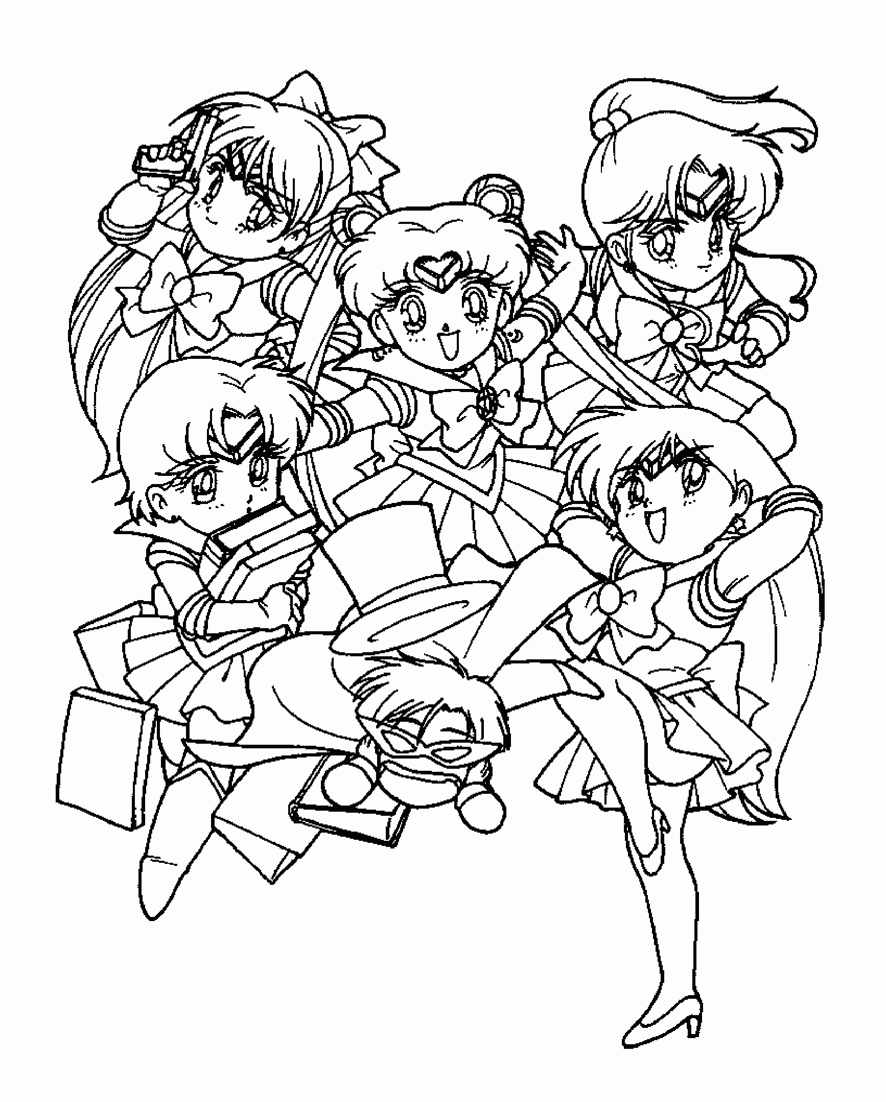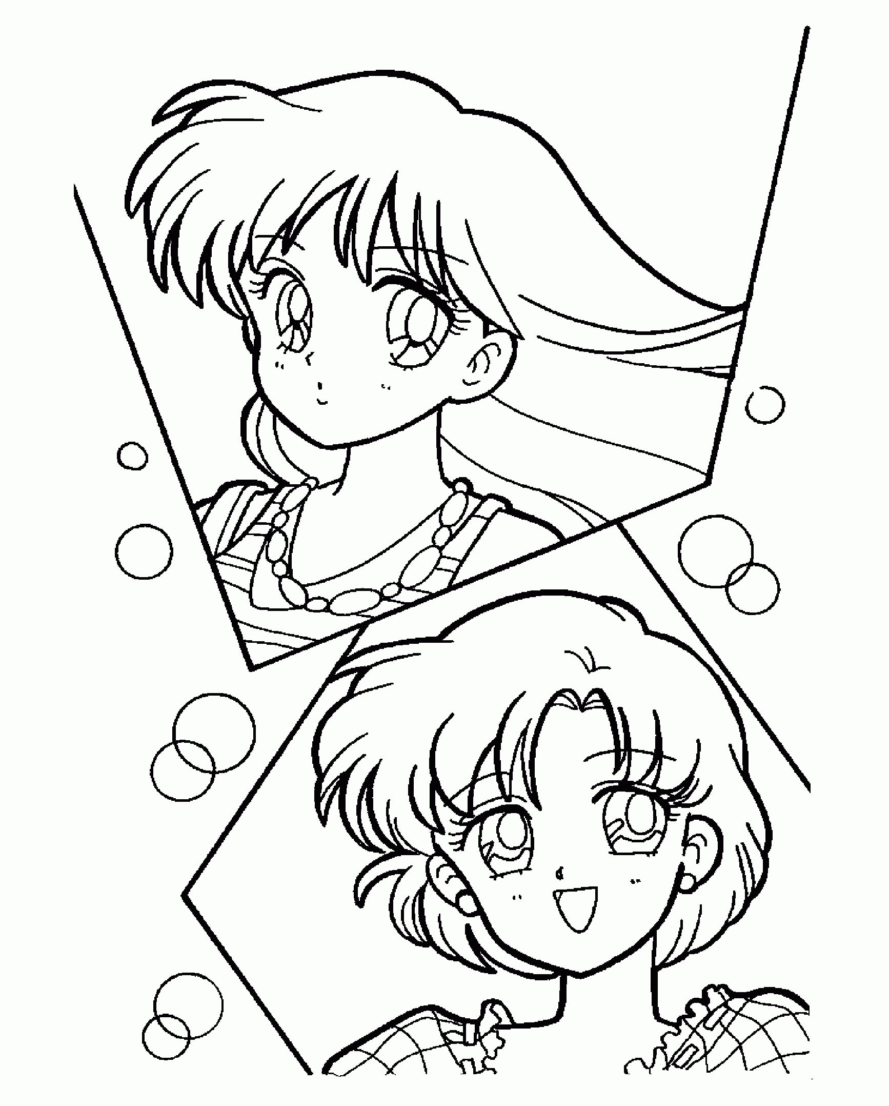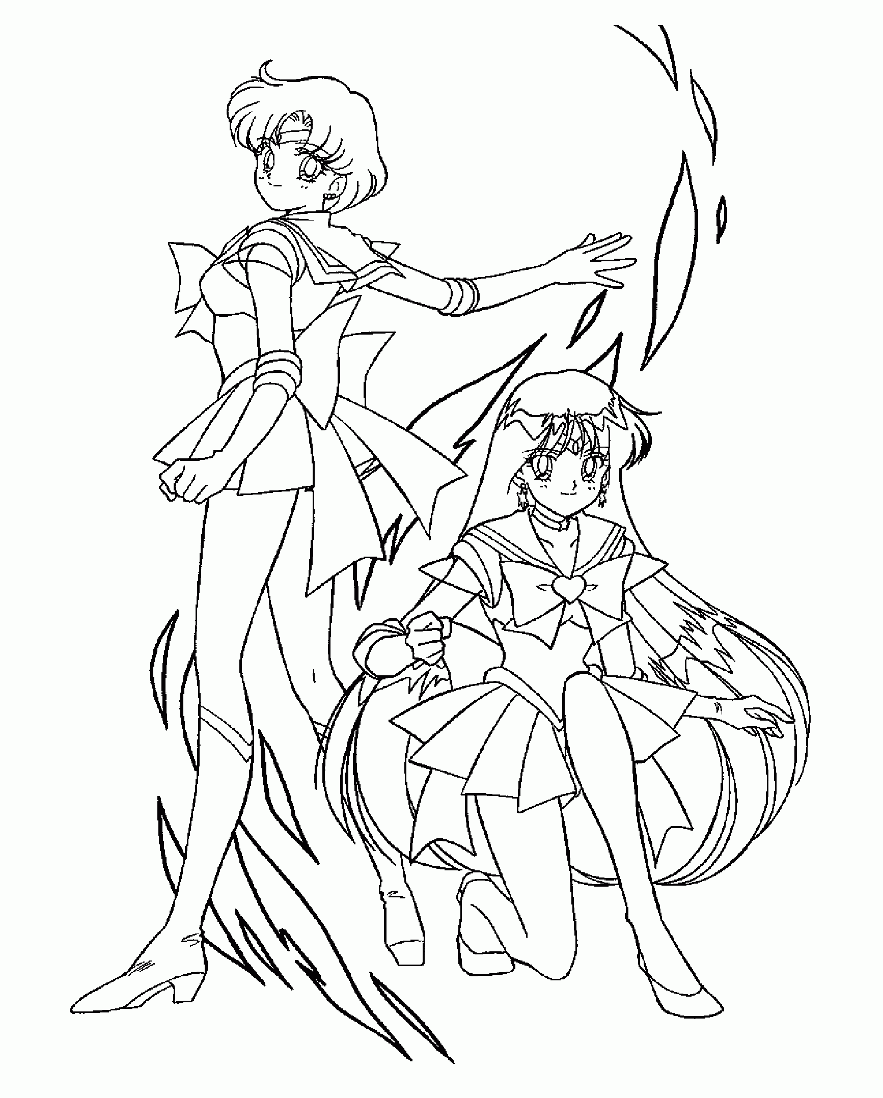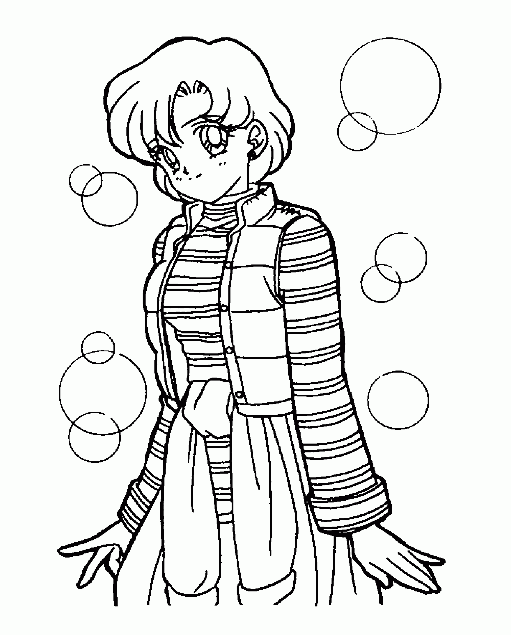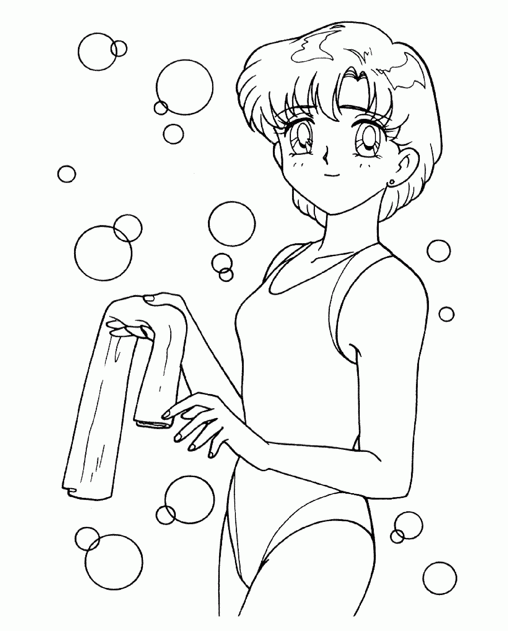 For those of you who have no drawing talent (like me!) or for those of you who like to color, here are some coloring pages! Each page has Sailor Mercury in it! Click on the thumbnail to open the picture in a new window. The full size pages are large, so they may take a little bit to load.