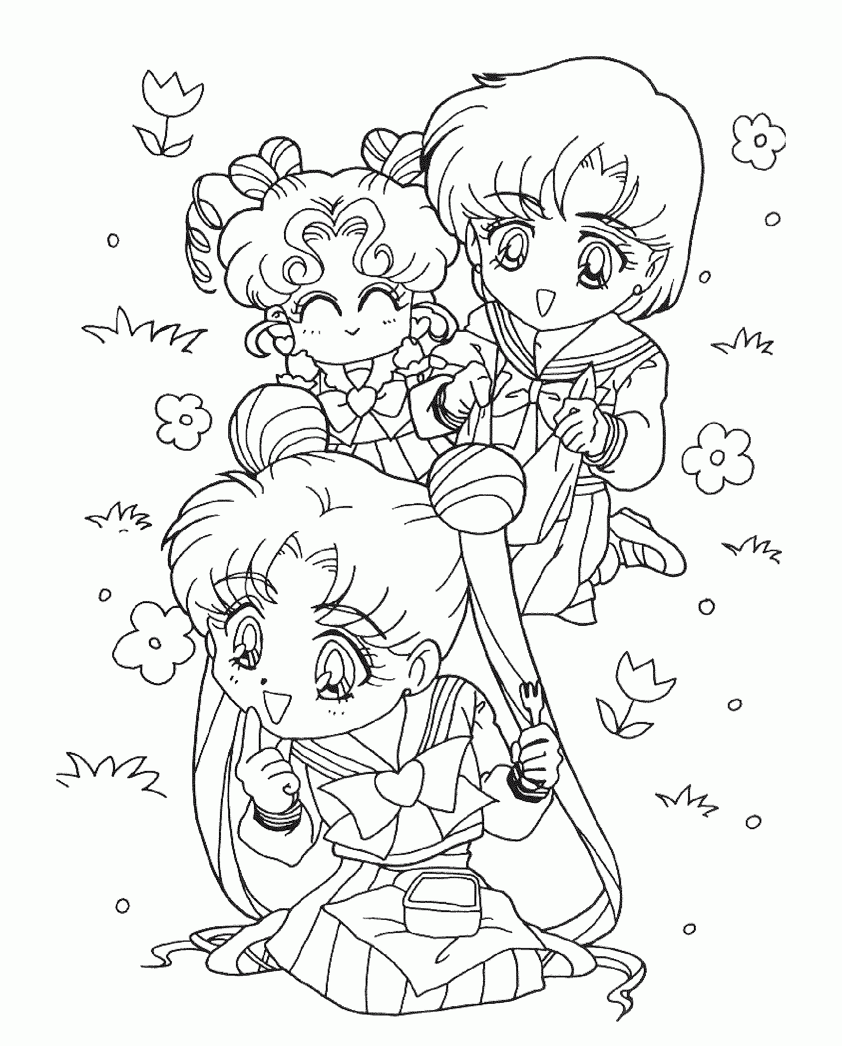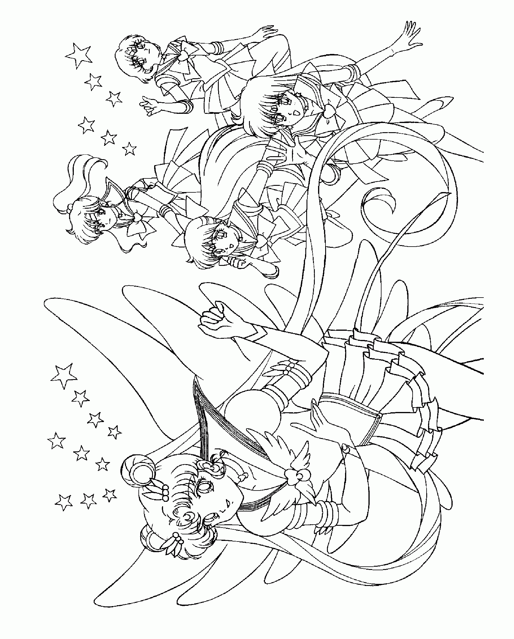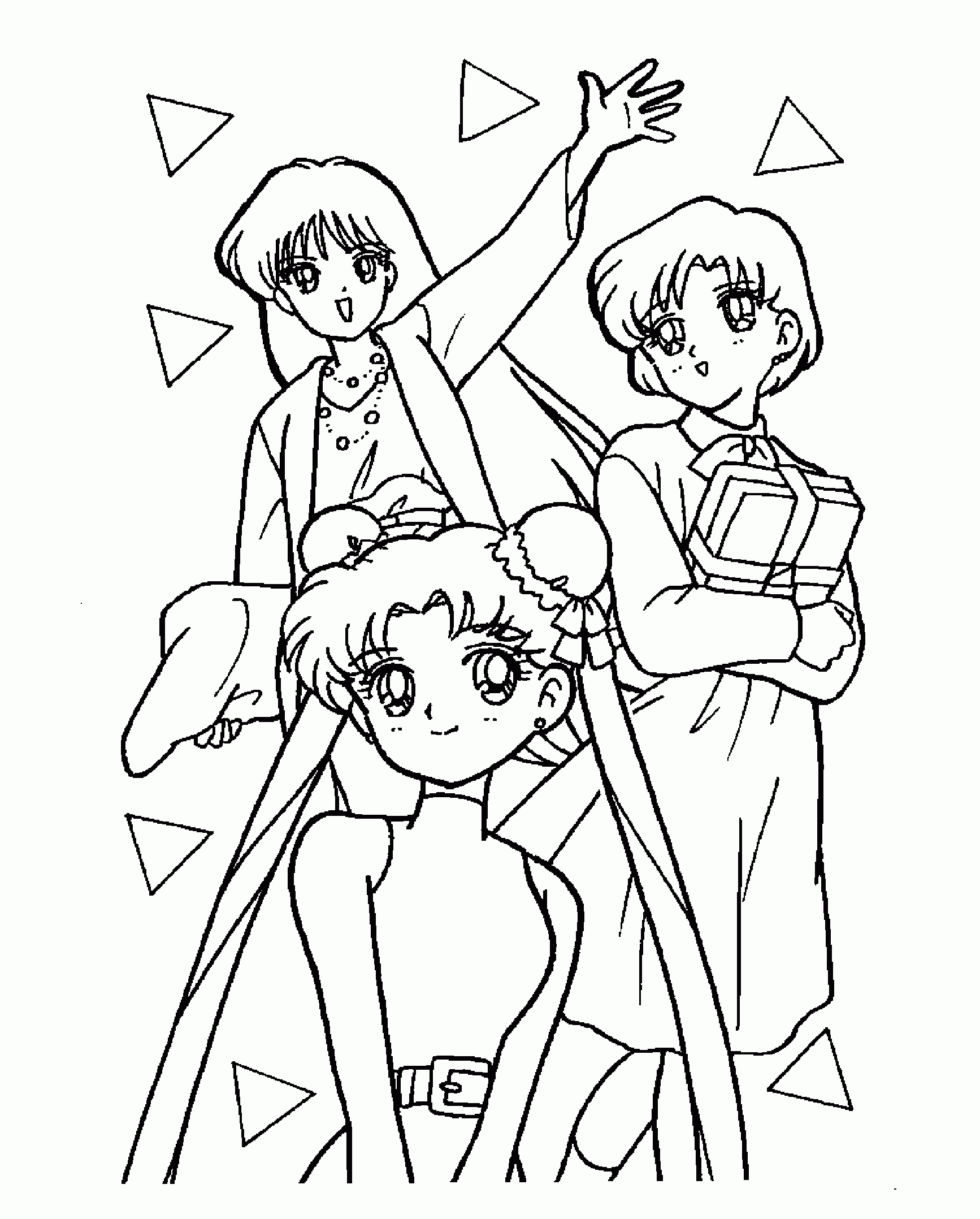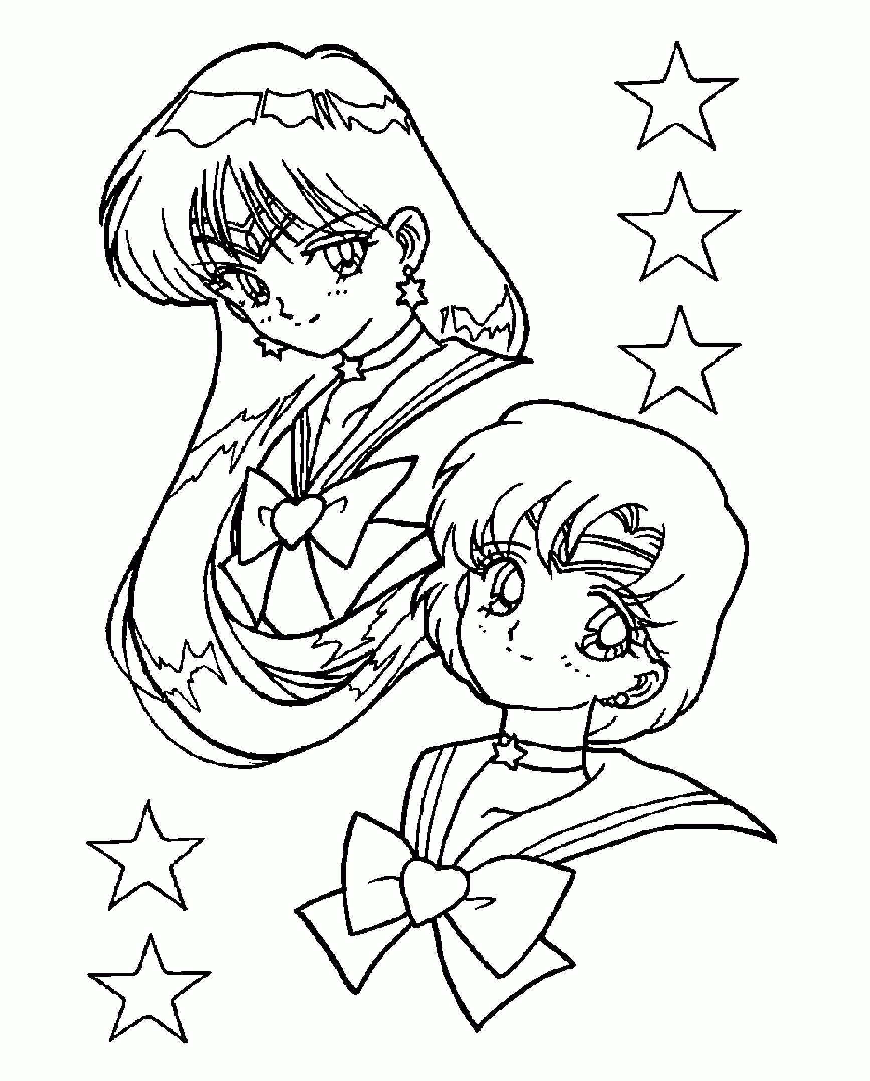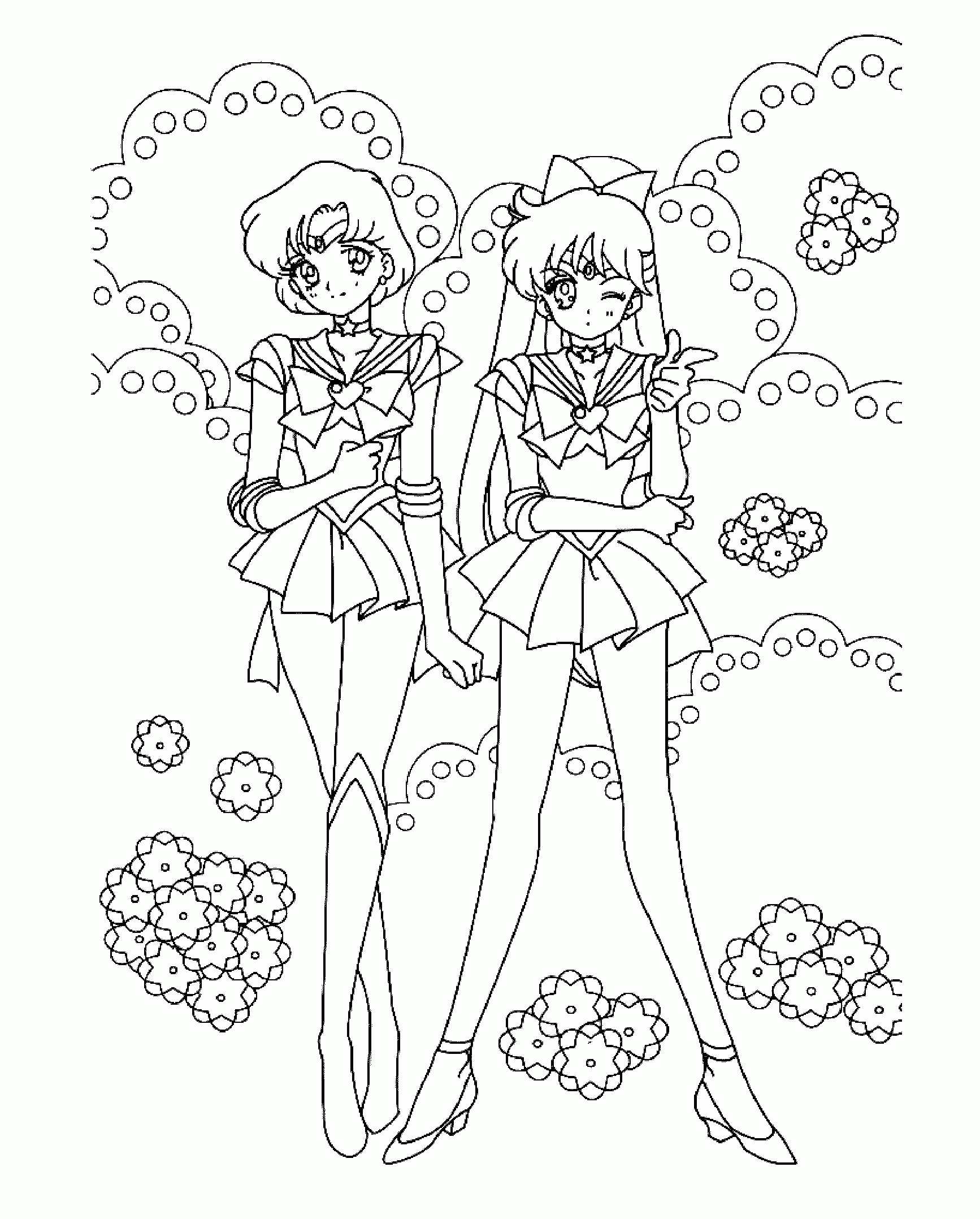 For those of you who have no drawing talent (like me!) or for those of you who like to color, here are some coloring pages! Each page has Sailor Mercury in it! Click on the thumbnail to open the picture in a new window. The full size pages are large, so they may take a little bit to load.
